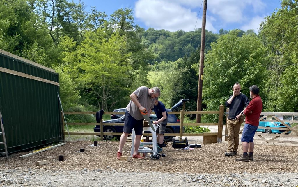 There’s been a lot of drilling, hammering and sawing in the background these past few Saturdays as the new shelter is constructed. This will create a space to keep us dry on site (once the rain arrives!) and the opportunity to harvest a bit more rainwater, a valuable resource for us as we have no mains supply. Enormous thanks to Matt and his crew of helpers for all their hard work